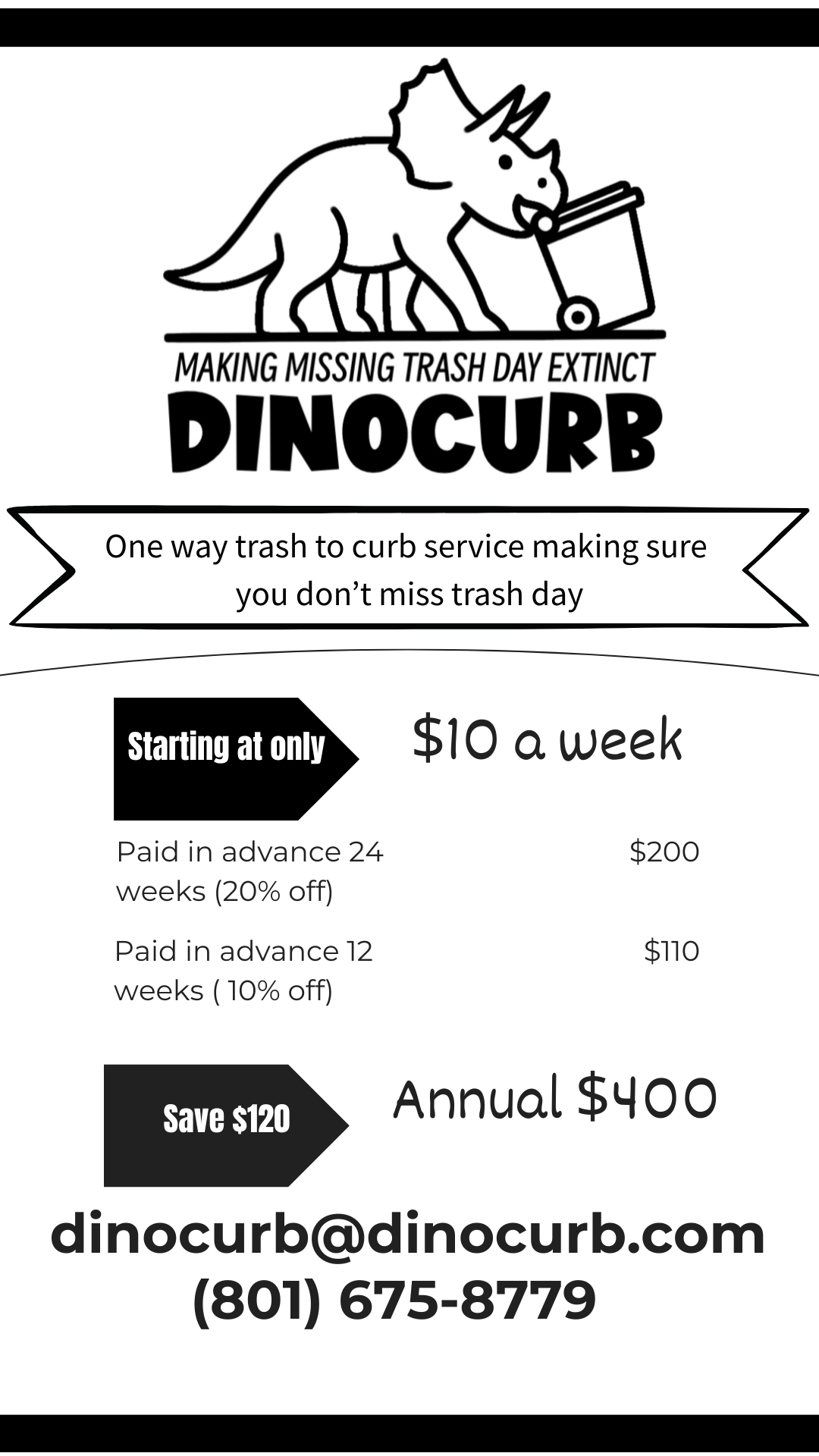 Sign up and see the benefits of no longer having to stress about remembering to take out the trash or if its time to take out your recycling! No more looking at your neighbors yard to see which trash day it is! We got you covered starting at $10 a week! we have packages to help you save the most when investing into making your life a little more manageable.